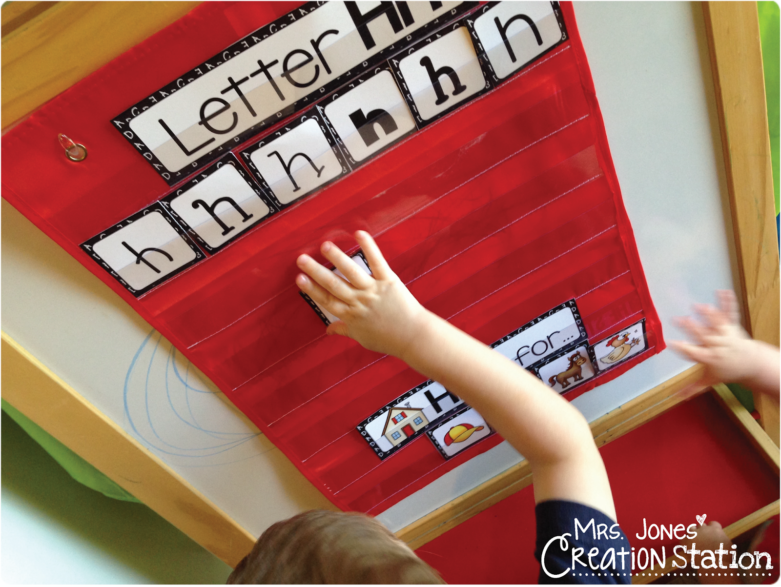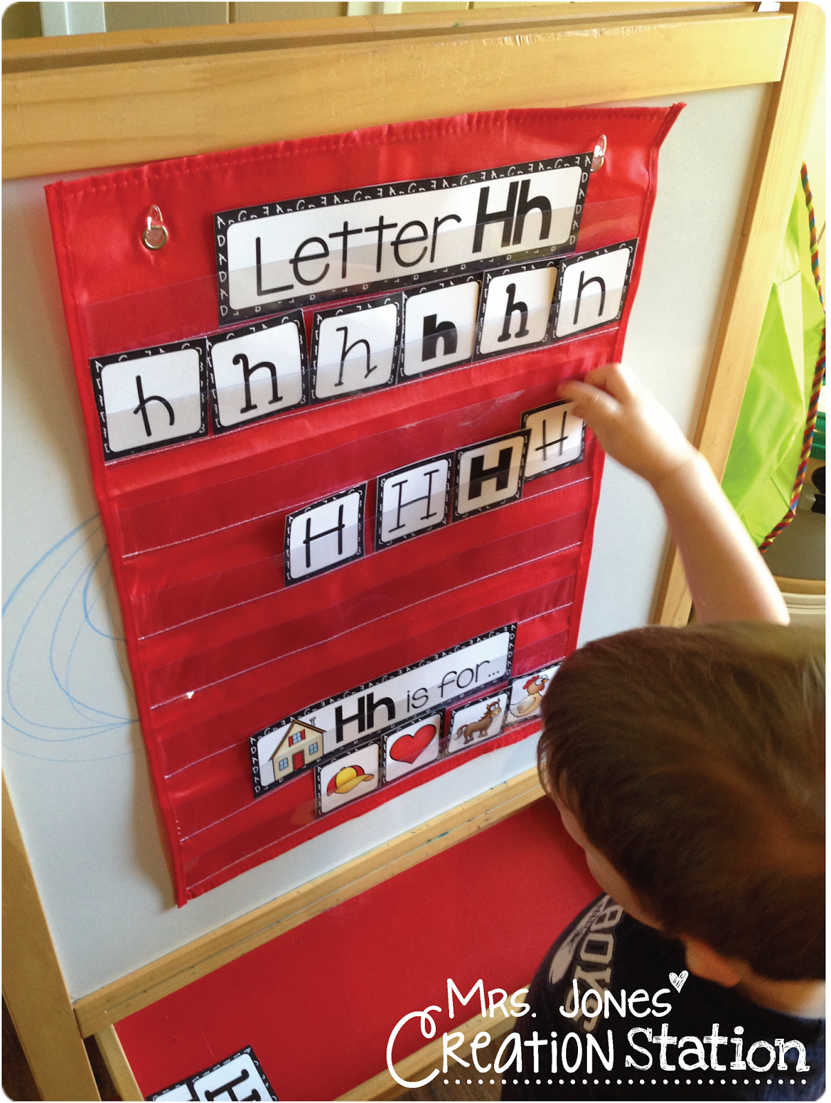 Then, we looked at the letter Hh picture cards and placed them on the pocket chart as we sang our Hh song to the tune of “London Bridge”…