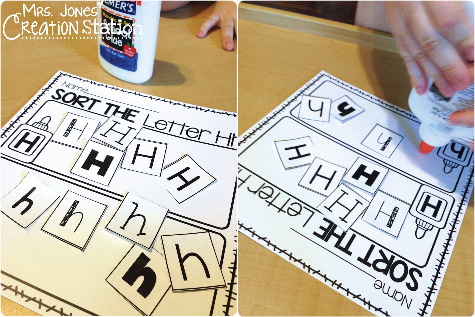 Grayson is having a great start to his school year! He has been working on letter identification, and his class studied the letter Hh last week. I couldn’t help but pull out my letter activities to review at home. We began by sorting the capital H’s and lowercase h’s on his pocket chart.